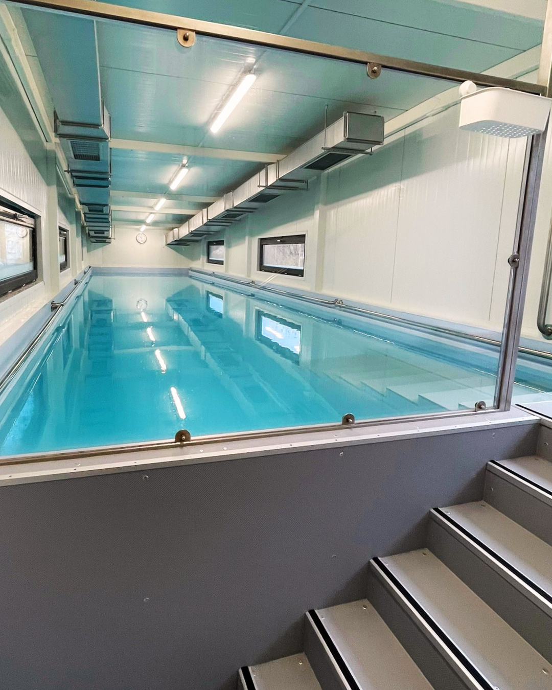 Unsere neue SchwimmBox in der Fröbelstraße 4 bietet ideale Bedingungen für alle Aqua-Fit Kurse: zwei großzügige, helle Umkleiden, vier Duschen, ein WC sowie ein 12,30 x 3,30 Meter großes Becken mit angenehmen 30–32 Grad Wassertemperatur und 1,35 Metern Tiefe. Der perfekte Ort für Bewegung, Gesundheit und Wohlbefinden im Wasser.
